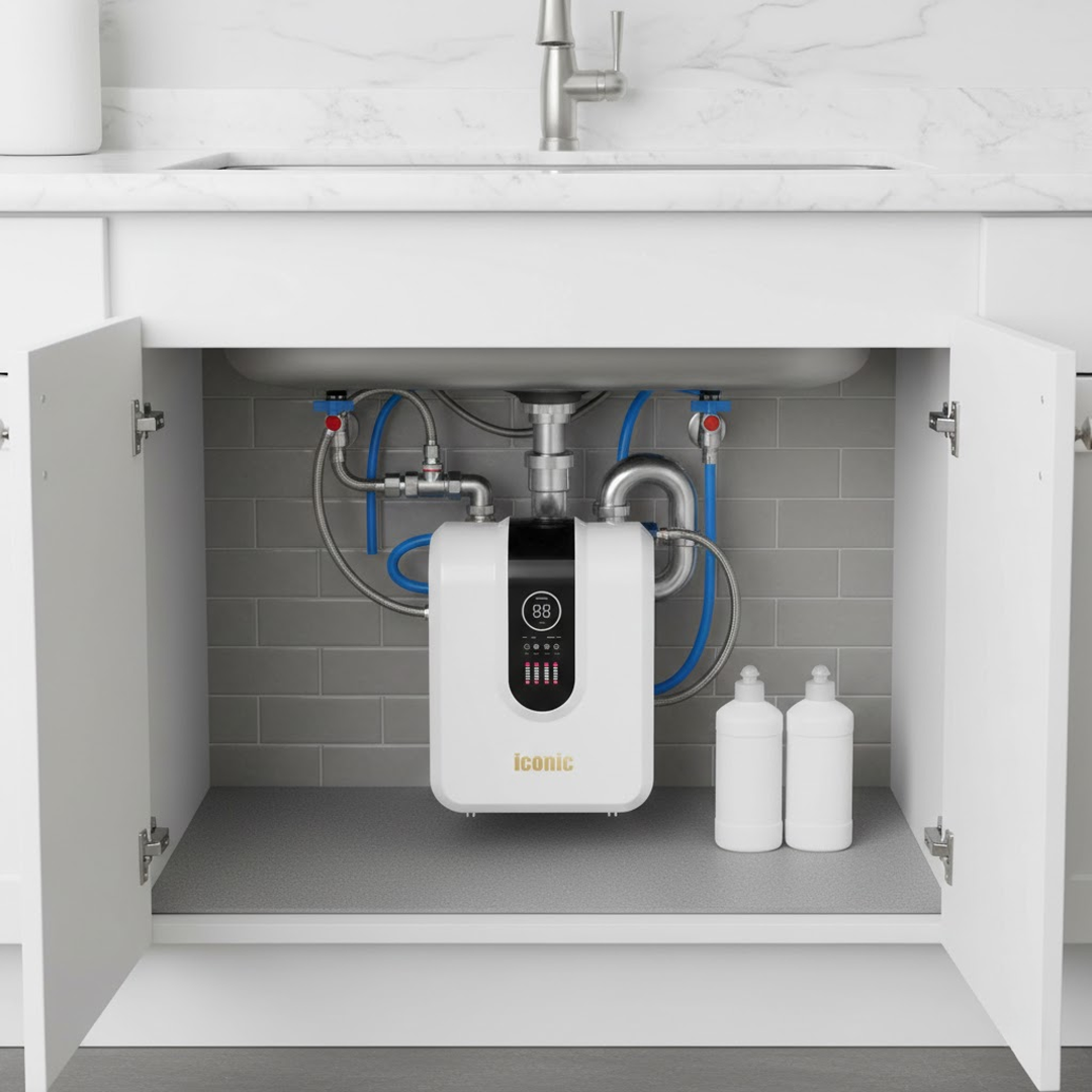 Накопительный бак — 10 л. Компактный и стильный дизайн подходит для установки под мойкой.