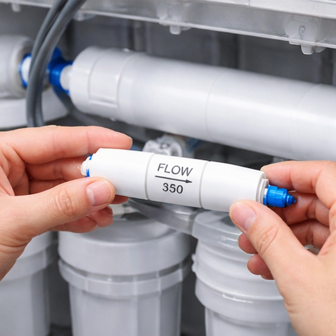 Ограничитель выполняет следующие функции: регулировка потока воды при промывке мембраны обеспечение правильного отвода дренажной воды поддержание стабильной и эффективной работы системы