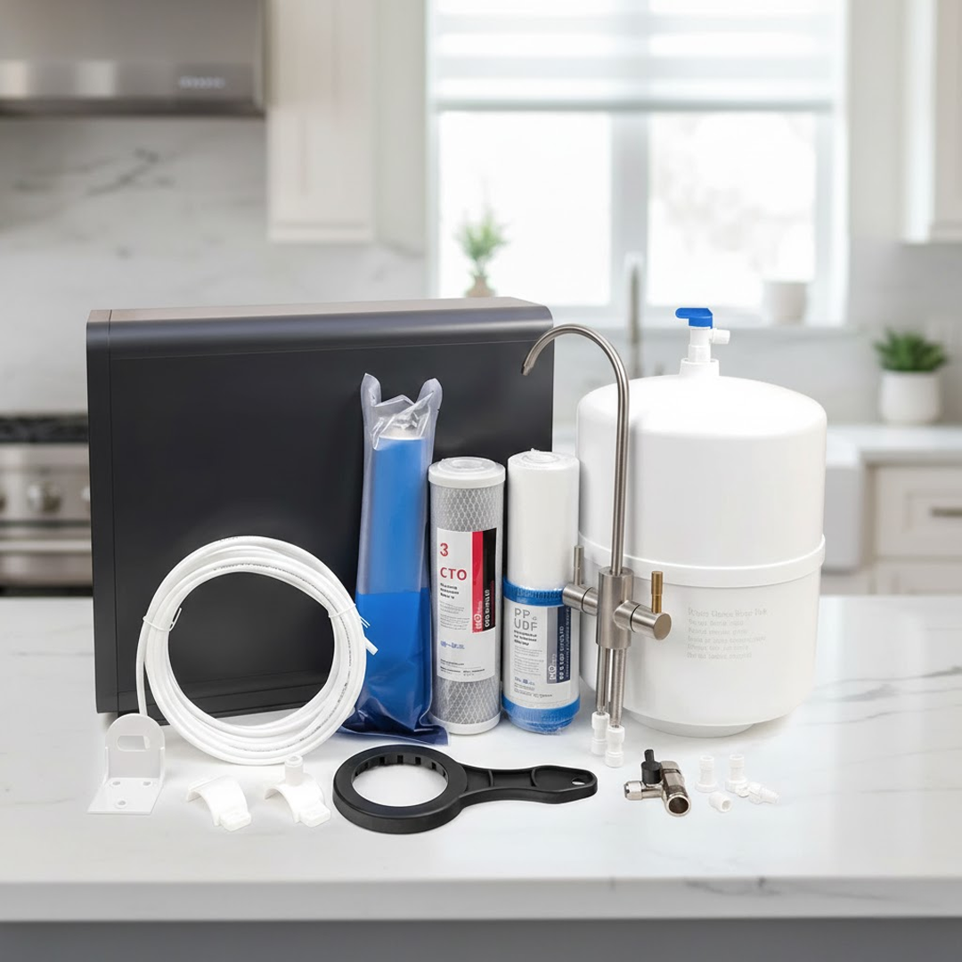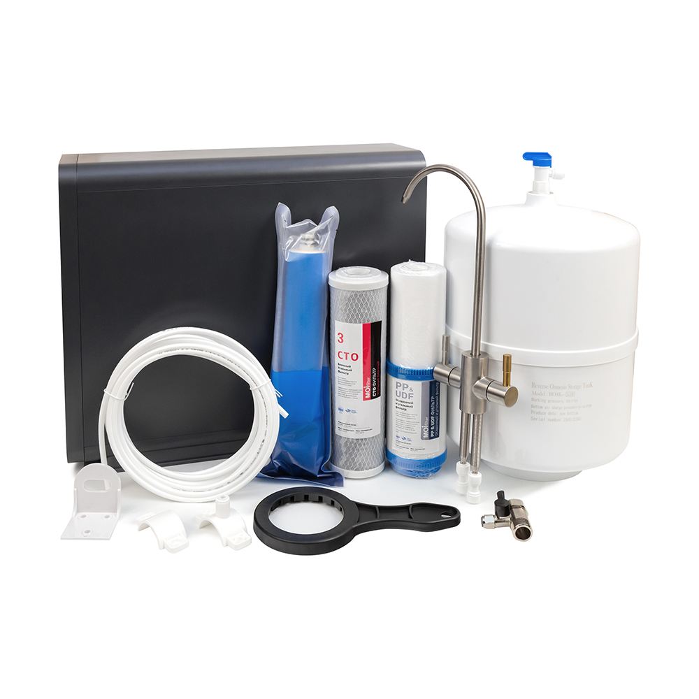 Современная система обратного осмоса с 6 ступенями очистки и функцией щелочной воды. Обеспечивает глубокую фильтрацию до 0,0001 мкм, эффективно удаляя хлор, бактерии, вирусы, тяжёлые металлы и неприятные запахи.