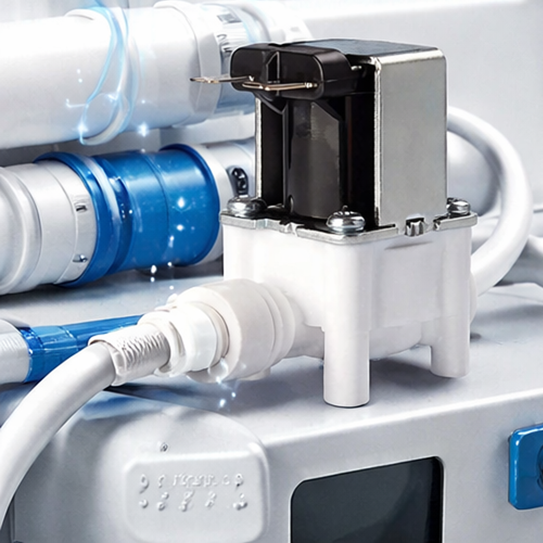 Moi Filter соленоидный клапан 1/4″ — устройство для автоматического управления потоком воды в системах обратного осмоса и водоочистки. Обеспечивает надёжное открытие и перекрытие подачи воды.